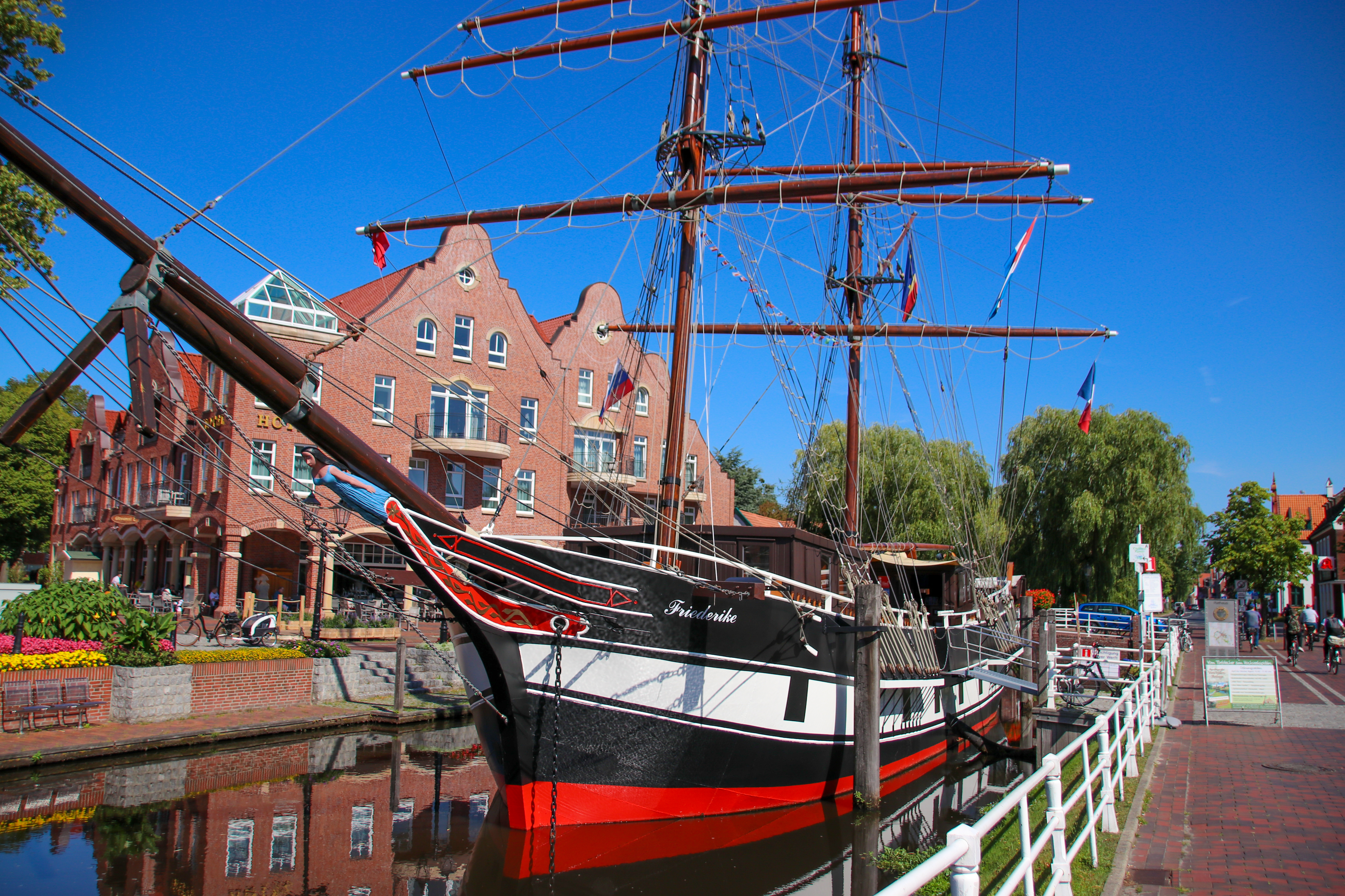 Die insgesamt sechs Schiffsnachbauten mit den ungewöhnlichen Namen prägen das Stadtbild Papenburgs