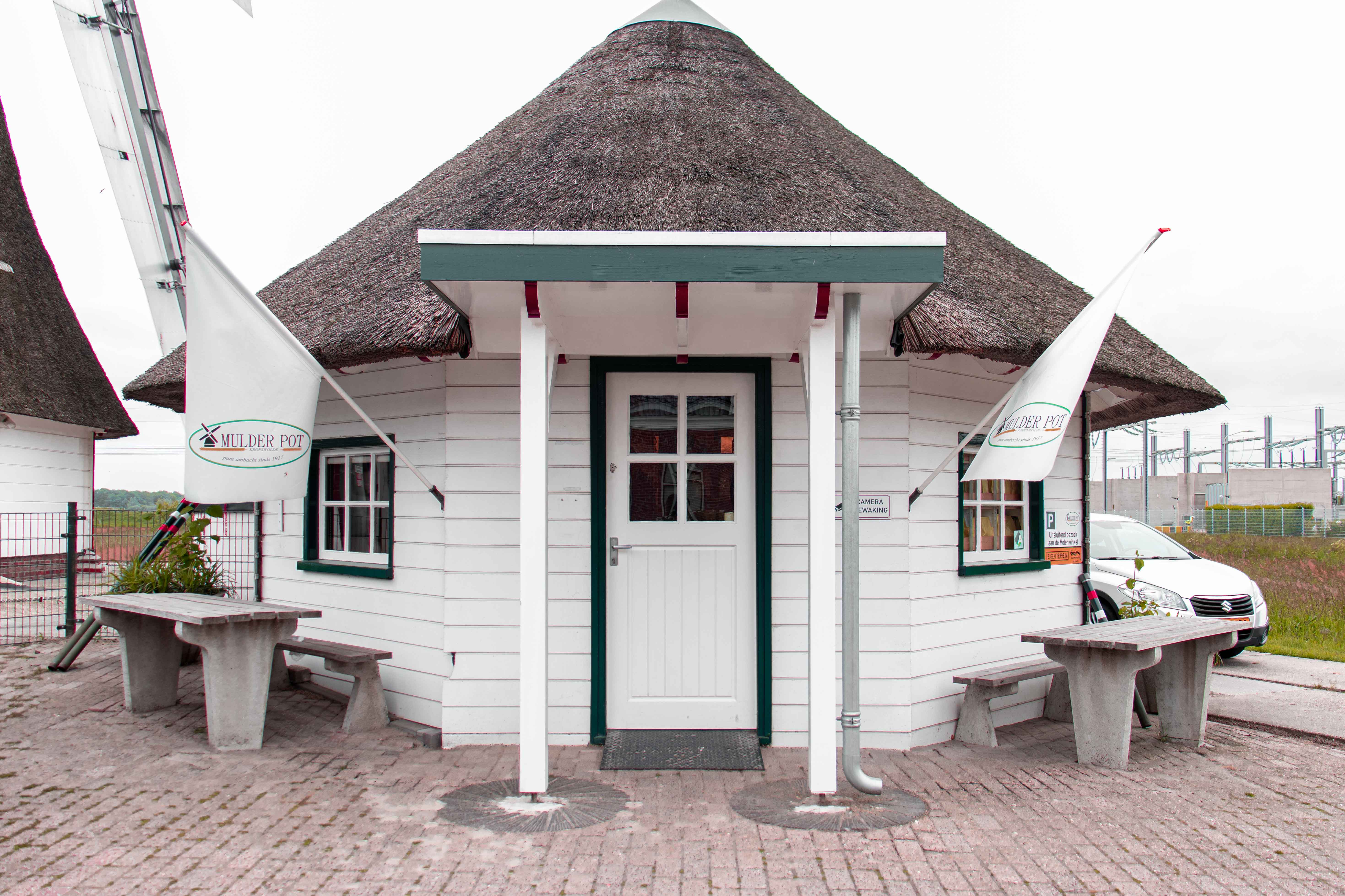 Der Grundsegler De Hoop überlebte über zwanzig Jahre, nachdem sein Vorgänger 1921 durch einen Brand zerstört worden war. Teile der gleichnamigen Ölmühle in Vierverlaten wurden zum Wiederaufbau der achteckigen Getreidemühle verwendet. Nach 1945 verfiel die Mühle und befand sich 1975 in einem sehr schlechten Zustand.Die Mühle ist seit 1977 im Besitz der Familie Pot. Sie wurde vollständig restauriert und erhielt eine größere Spannweite. 2021 wurden neue Segel montiert. Eine Besonderheit ist der auf den Oberseiten der Verbindungshölzer angebrachte Bart.Bei Mulder Pot mahlen die Mühlsteine das Getreide nach traditionellen Methoden.